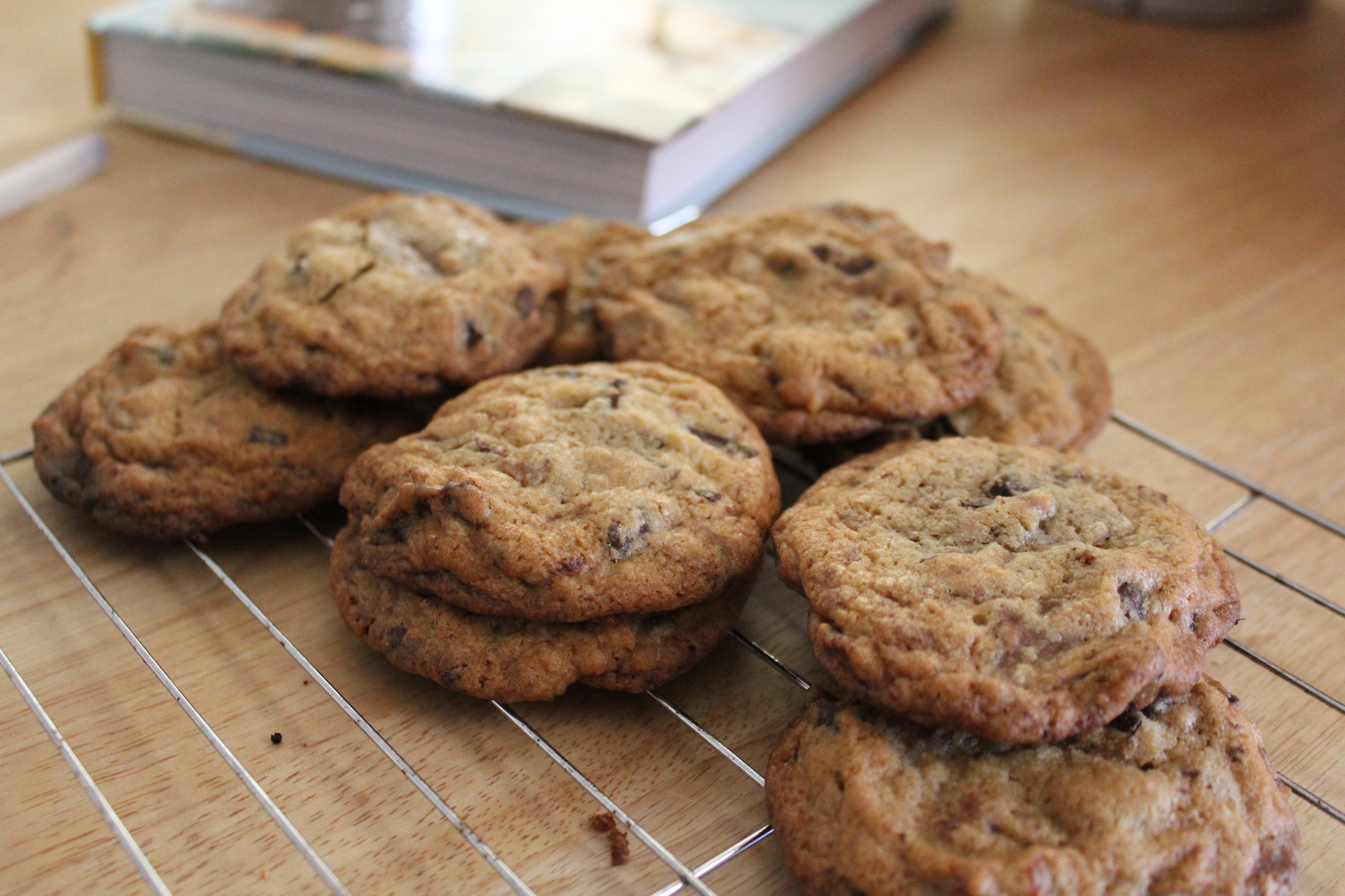 This is a modification of an old post. Part of my holiday baking agenda this year was to prepare a box of cookies for my friends at Hungry Mother. I miss them and wanted to stop in with some holiday goodies. What better ingredient to present HM with then BACON!!! Along with collard greens, grits and catfish, PORK is a top ingredient in that kitchen. I used bacon in a few of my desserts and they were always greeted with wide eyes and smiles. I used my chocolate chip cookie recipe and added 1/2 cup crispy, smoky bacon chopped in itty bits. The chocolate plays with the salt and smoke of the bacon beautifully and the flavors bring the richness of these cookies to a whole new level, a natural complement to your favorite bourbon based cocktail!!