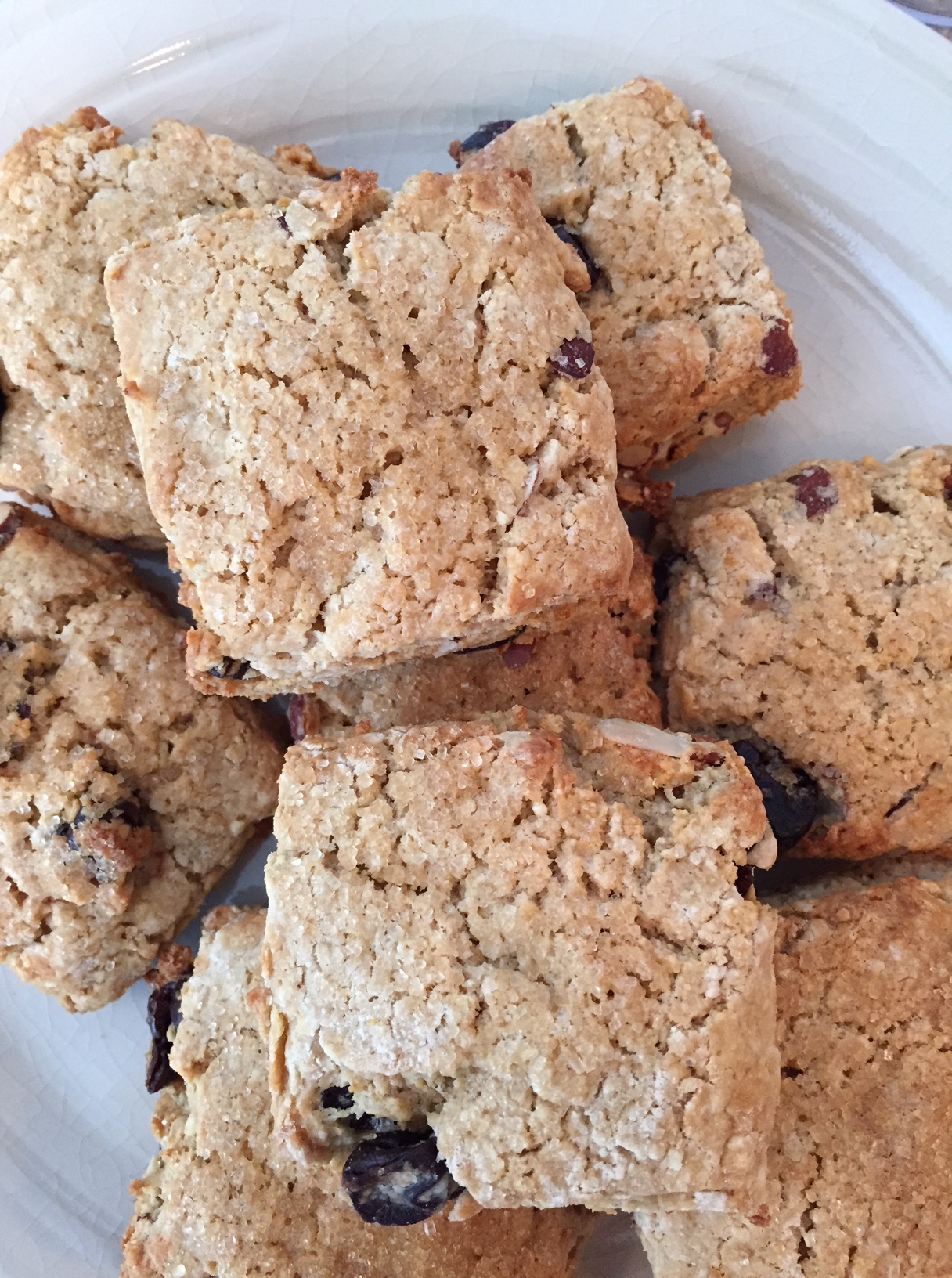 Of course I baked for the occasion. I made no sugar banana bread for the kids and Cherry Almond Scones for the Mamas. The scones, while not “healthy” were a treat packed with healthy ingredients like whole wheat flour, almonds and cherries!  They were a hit, and I even had some left over to share with my in-laws later in the week. If you are interested in finding out more about how almonds can be an important part of a healthy diet head on over to Nuts.com.  They inspired me to make an almond packed treat!