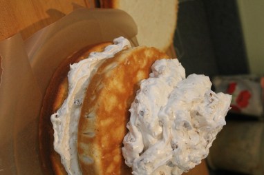 The frosting, as mentioned, is reminiscent of marshmallow and is best eaten the day it is made. I made the cake layers on Friday and made the frosting and assembled on Saturday morning, for eating on Saturday night. The assembled cake benefits from a few hours sitting at room temperature, as it sits it firms up enough to slice without all of it squashing out of the layers. I had a slice for breakfast on Sunday morning and it was still yummy, but I wouldn’t recommend keeping it for more than a day, and don’t chill it.