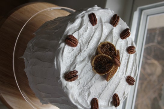 This cake is serious, regal and very grown up. Dried figs, raisins, pecans, bourbon, vanilla and almond extract bring complexity of flavor, I also added a little cinnamon which I think rounded them all out beautifully against the sweet marshmallow like frosting. I decided to increase this recipe by half so that it yielded 3 layers of cake and a generous amount of frosting. This was the tallest cake I have ever made! It ended up not remaining all that elegant as I served it, but for what it lacked in presentation it made up for in taste. It was a big hit! When our friend Donald asked me what kind of cake it was and I answered “Lady Baltimore”, his response was “Oh, I hope I really love it so when people ask me what my favorite cake is I can say “Lady Baltimore”, that is so much more interesting than chocolate!!!”